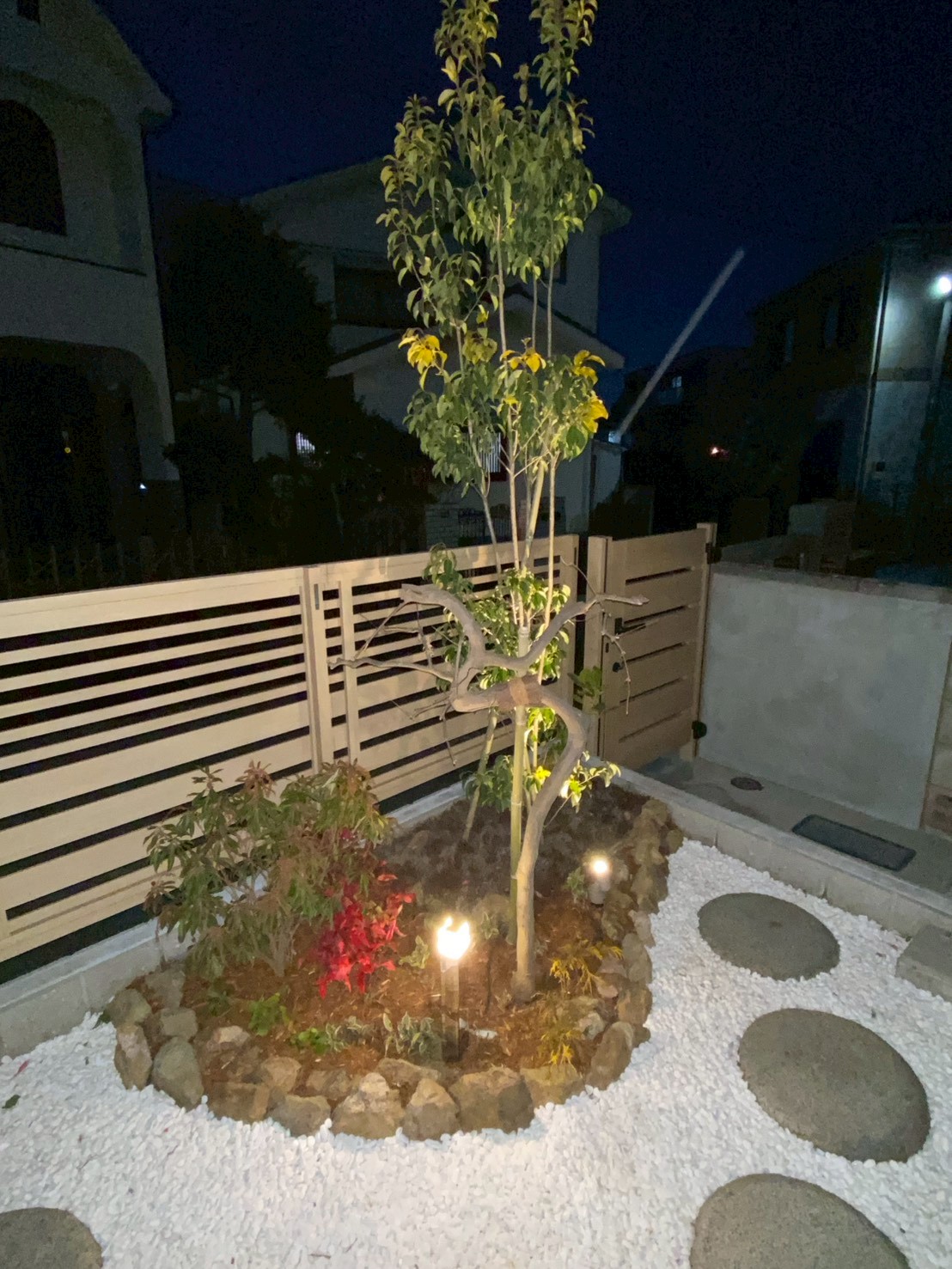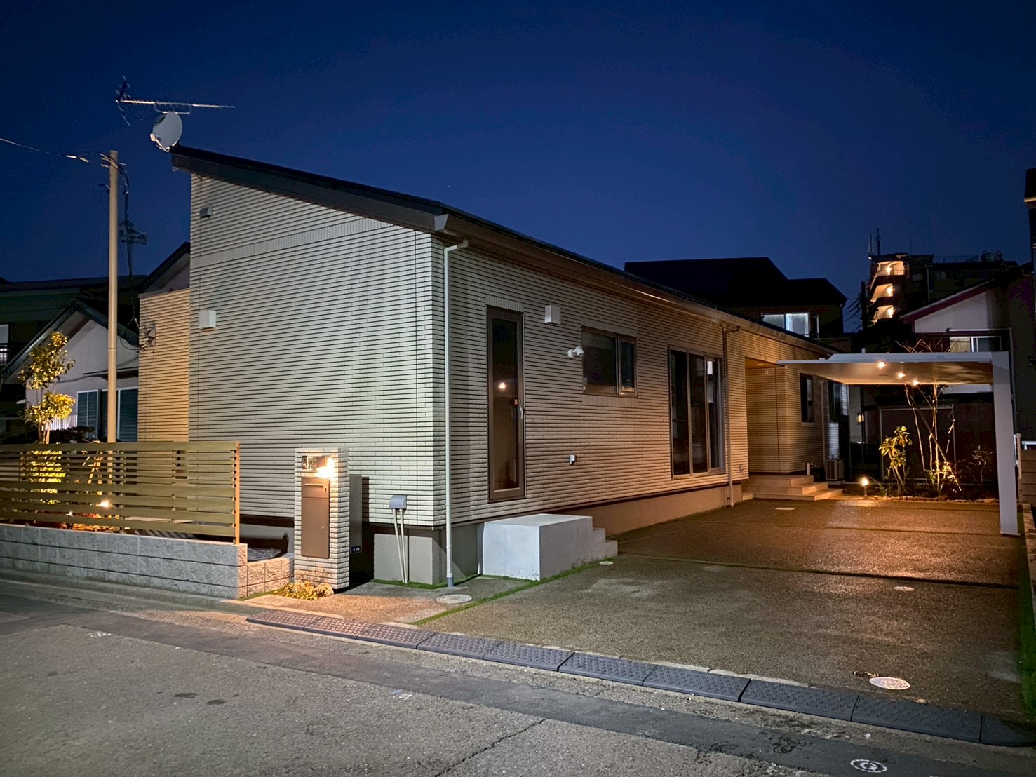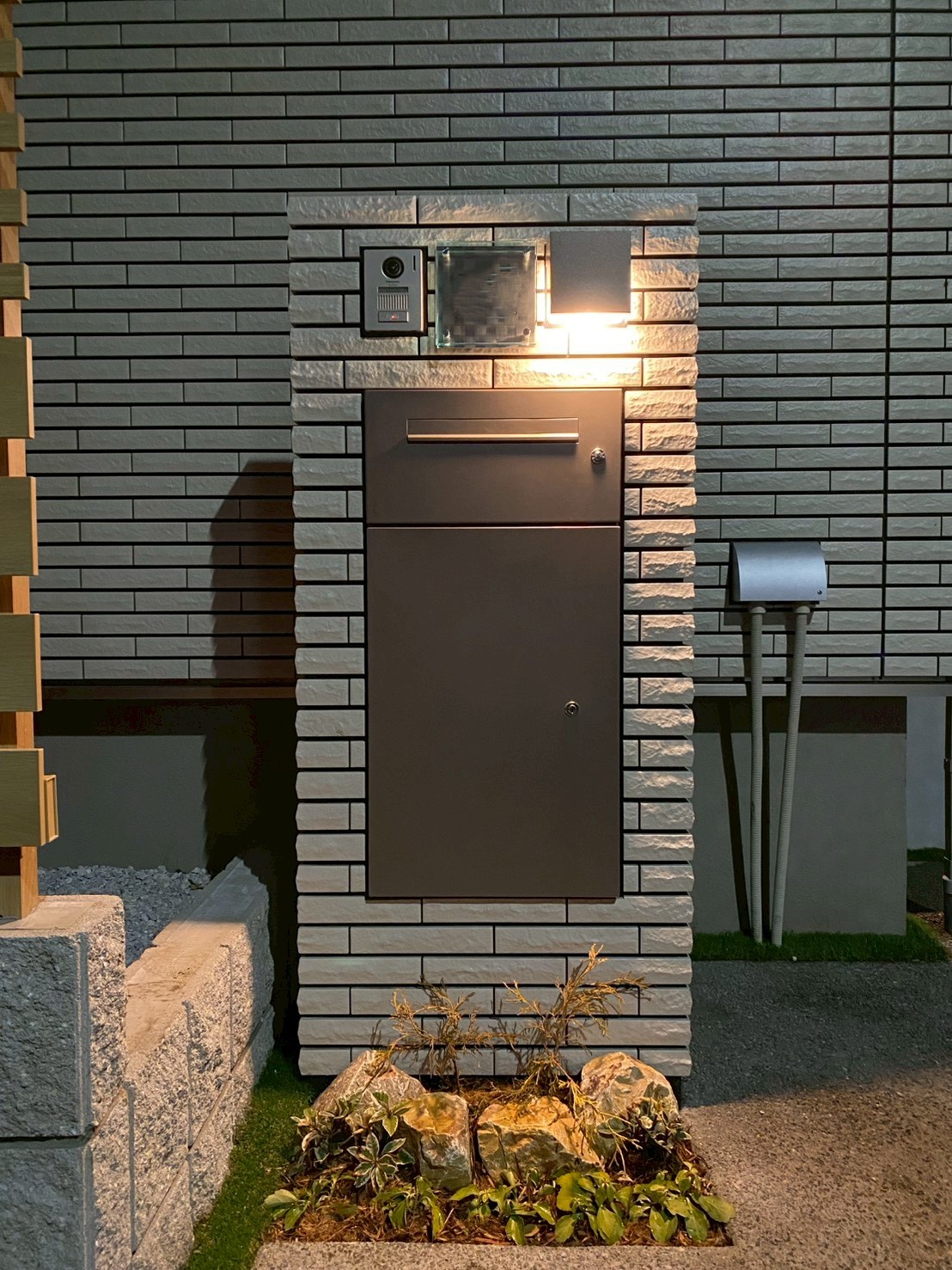 2025年2月 埼玉県坂戸市 K様邸 今回のエクステリア工事は埼玉県坂戸市のK様邸 アプローチインターロッキング敷き、植栽工事 土間コンクリート打設、門袖造作、タイル貼り 人工芝敷き、物置設置工事等をお任せいただきました。 門袖は重厚な仕上がりになりました! 夜間の意匠にもこだわった素敵な外構です。