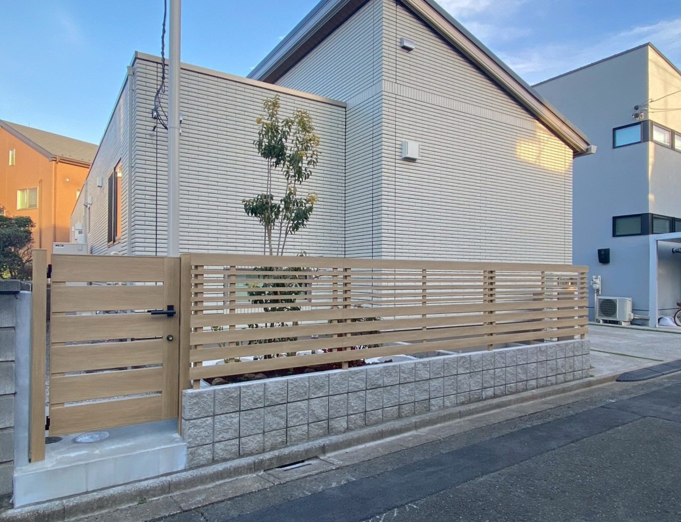 2024年4月 久喜市 M様邸 今回のエクステリア工事は久喜市 M様邸 インターロッキング、土間コンクリート打設工事 玄関ポーチ階段施工、化粧ブロック積み、宅配BOX 目隠しフェンス設置等をお任せいただきました。 要所に木目を使用して綺麗なアクセントに! カースペースは目地にインターロッキングを使用し 統一感のある仕上がりになりました。