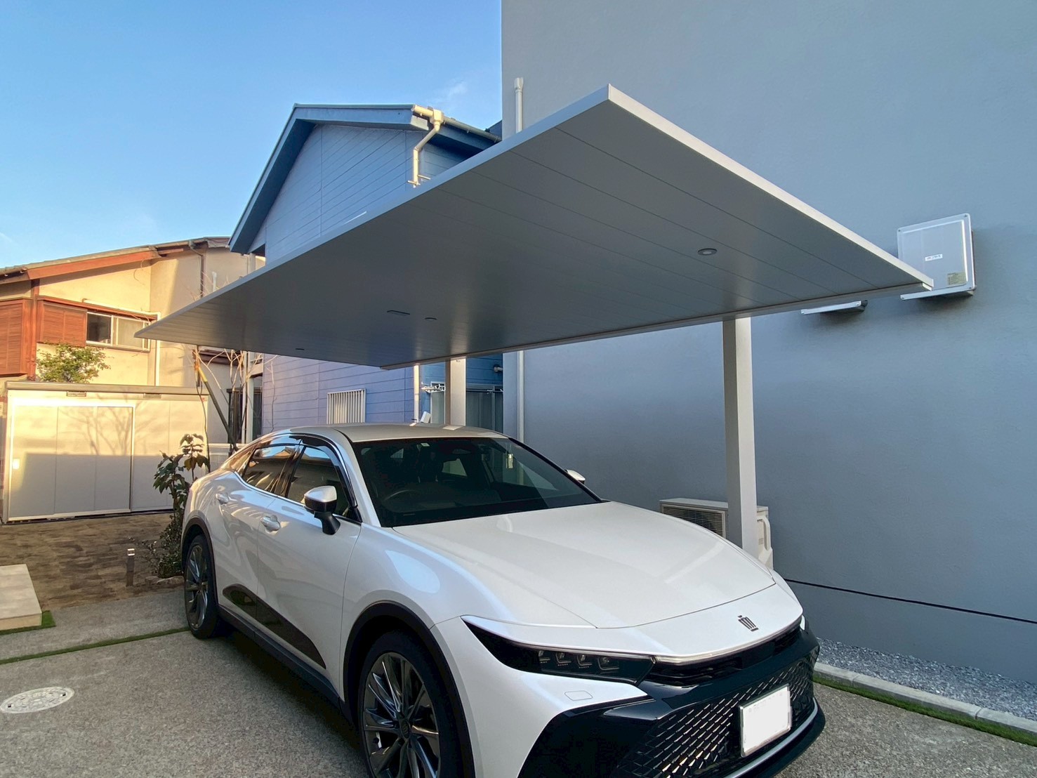 2025年1月 埼玉県川越市 W様邸 今回のエクステリア工事は埼玉県川越市のW様邸 駐車スペースコンクリート、カーポート設置 アプローチにインターロッキング敷設、砂利敷 立水栓設置等をお任せいただきました。 カーポートと機能門柱はブラックで統一して 調和のとれたカッコよさがありますね! LIXILの機能門柱FTはスリムな見た目と 優れた機能性で、多く人気を集めています!